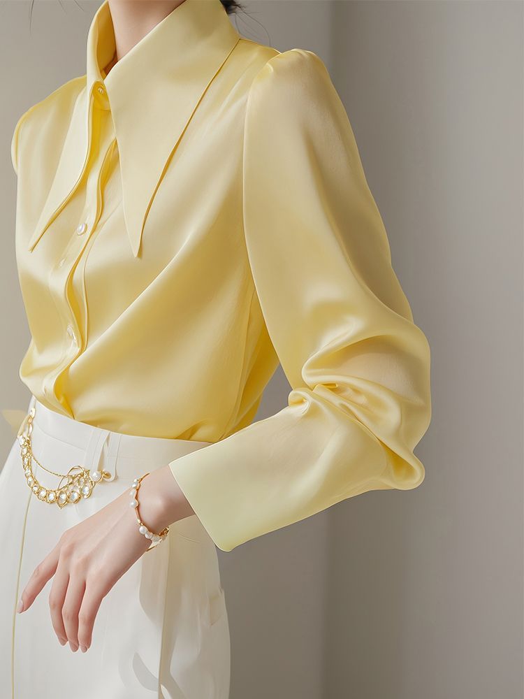Yellow Big Pointed Collar Long Sleeve Shirt